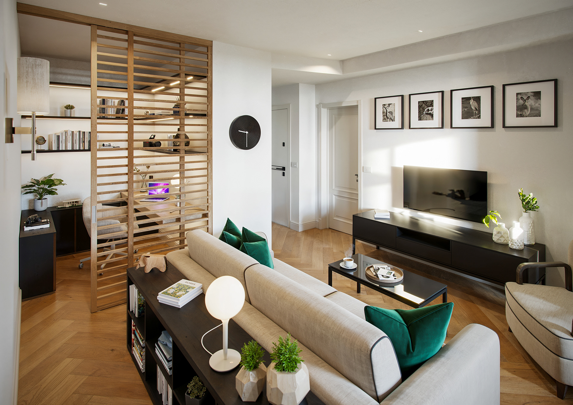 Apartment located in Bologna (Italy) inside a listed building. Renovated maintaining a timeless classic style.